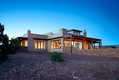 SF Brown was presented with a unique opportunity to re-enter the custom residential market in 2010. Originally approached to provide consulting services for a new home on a remote 6500 acre ranch, SF Brown was swiftly contracted to construct the nearly 4,000 sf home. Situated 3 miles from any accessible utilities, the project owner requested of SF Brown to research and implement the latest building technologies including solar, wind, and geo-thermal energy generation, net zero-energy consumption, and low water consumption. An 18-month process evolved into a truly remarkable, beautiful, comfortable home set on a rocky outcropping in the beautiful desolation of northeastern New Mexico.